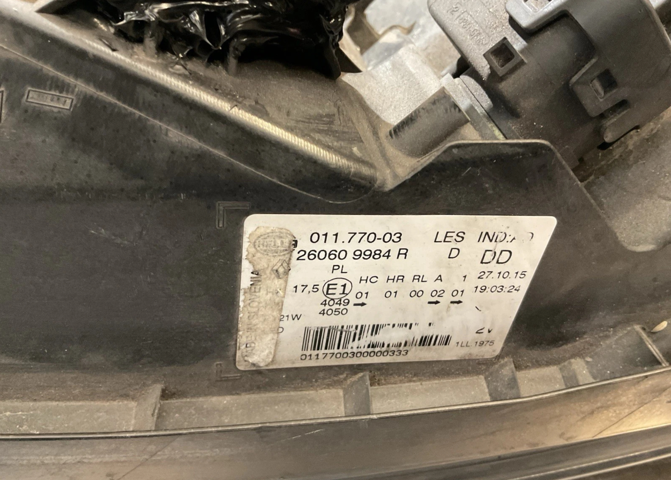 2016 RENAULT KADJAR FRONT PASSENGER SIDE HEADLIGHT LAMP 260609984R